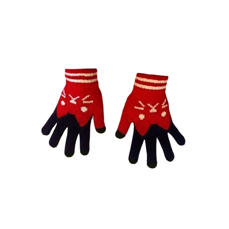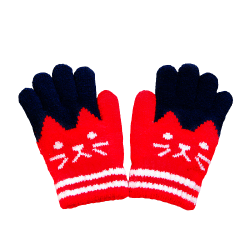 Dětské prstové teplé rukavice s kočičkou / modro-červené